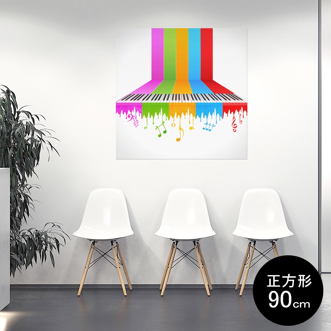 ポスター ウォールステッカー シール式ステッカー 飾り 90×90cm Lsize 正方形 壁 インテリア おしゃれ 剥がせる wall sticker poster 002543 カラフル 音楽 ピアノ