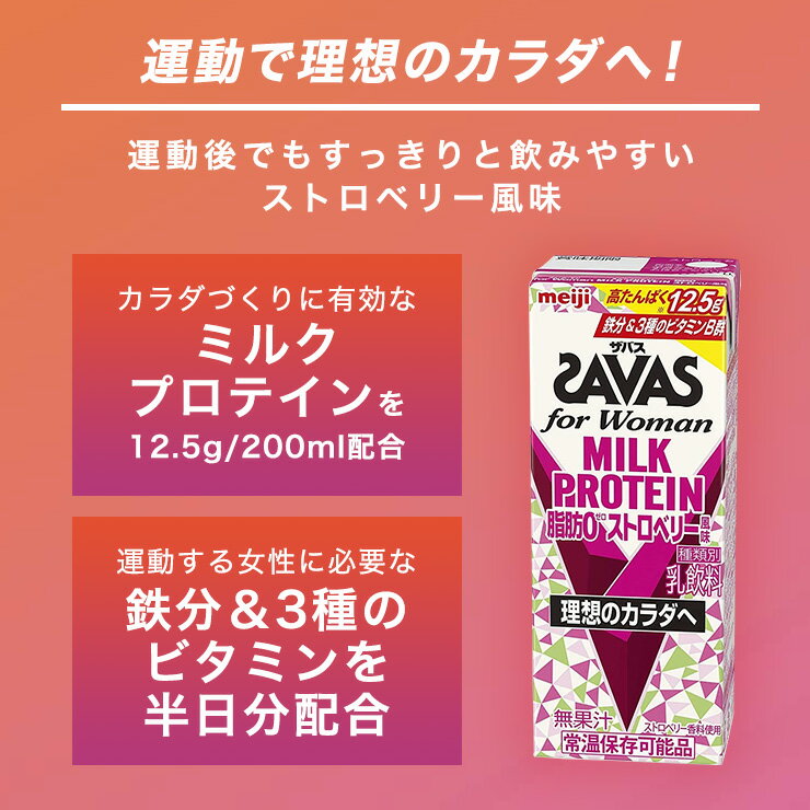 明治 SAVAS ザバスミルクプロテインストロベリー 200ml 【96本】|meiji 明治 プロテイン飲料 ダイエット スポーツ飲料