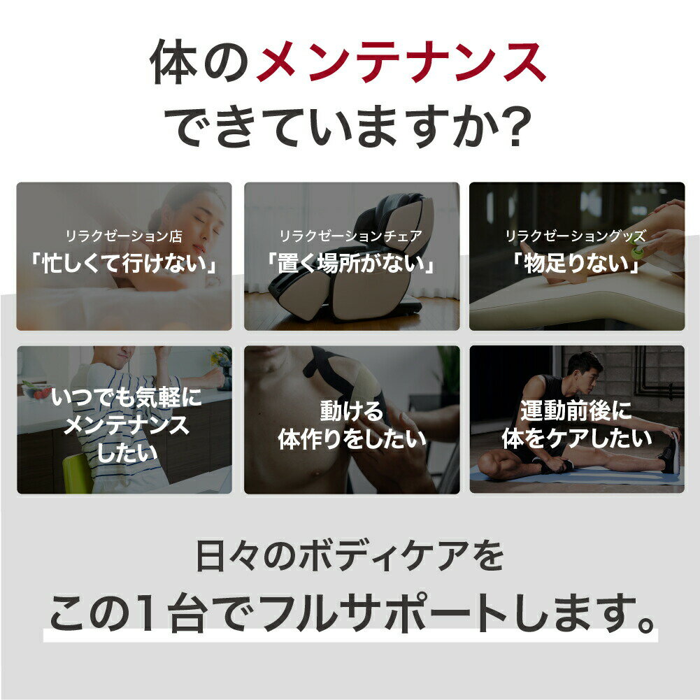 ・悪性腫瘍のある方 ・心臓疾患のある方、血栓のある方 ・血行障害、毛細血管拡張、血圧に異常のある方 ・薬を服用中の方(医師にご相談の上ご使用下さい) ・糖尿病による合併症などで、高度な末梢循環障害による知覚障害のある方 ・肌に傷や湿疹、はれものなど異常のある方 ・安静を必要とする方、四肢の不自由な方 ・発熱している方 ・体調不良、身体に異常を感じている方 ・骨折、骨粗しょう症、ねんざ、肉離れなどの急性疾患のある方 ・背骨に異常のある方、背骨が曲がっている方 ・医療機関で治療中の方(医師にご相談の上ご使用下さい) ・かつて治療や手術を受けたところ、または疾患部へ使用する方 ・体力が極端に衰えた 高齢者 ・自ら意思表示ができない方や操作が行えない方 ・神経障害、皮膚知覚障害、アレルギー体質、皮膚病、及びアトピー性皮膚炎の方、敏感肌の方 ・医師から マッサージ マッサージガン の使用 を禁じられている方 ・以前に、各種 マッサージ器 マッサージャー マッサージガン を使用した際に体調を崩されたことのある方 上記に当てはまらない場合でも、ご使用に不安がある方は医師に相談してください。