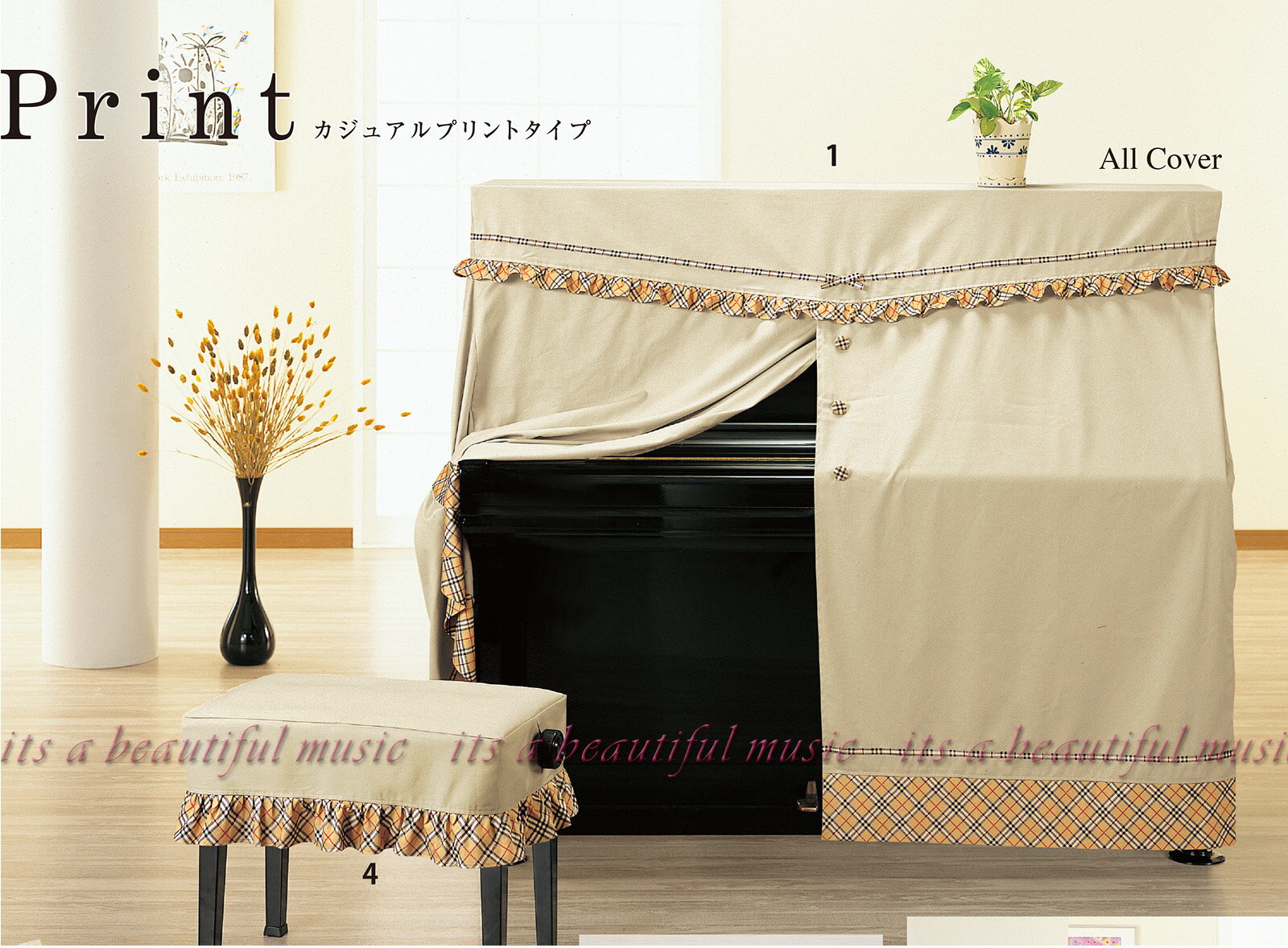 【its】レビューでもれなく高級クロス同梱!アップライトピアノカバー(オールカバー) 吉澤UP-415B「シンプルで穏やかな色合い」【Mサイズ】