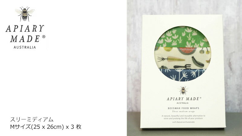 アピアリーメイド スリーミディアム M 25x26cm x 3枚 食品保存用ラップ オーガニック 無添加 自然食品 購入金額別特典あり 正規品 ラップ リビングフード 天然 ナチュラル サスティナブル apiary made サステナブル